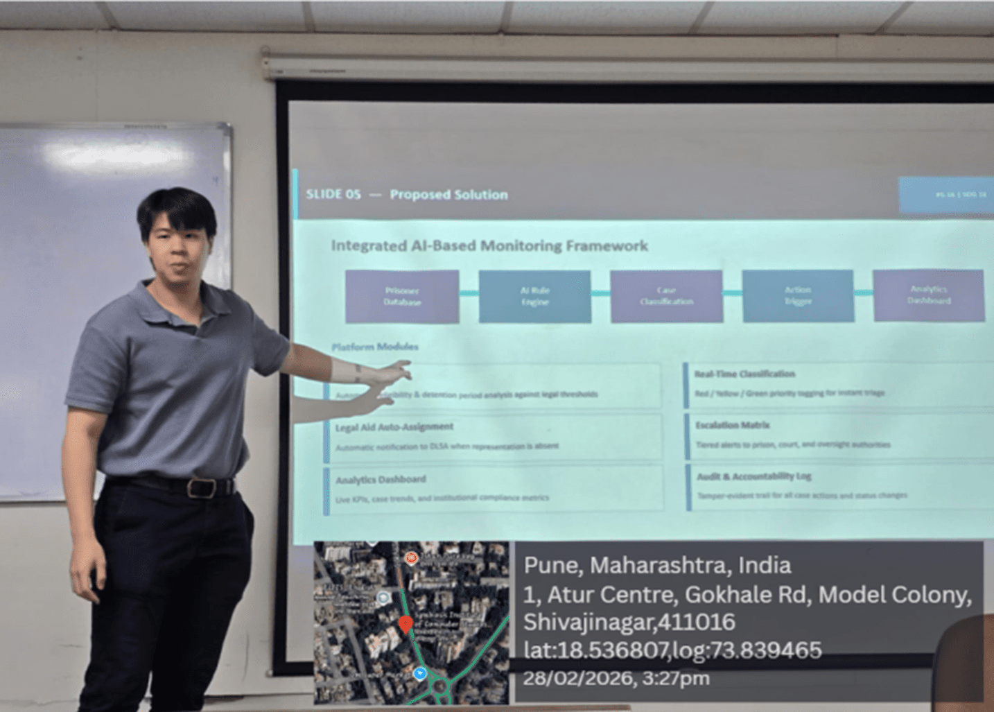 Dr.Parag Kaveri, Dy.Direcotr, SICSR, Dr.Rajashree Jain, Professor &SPoC, SIH 2024 and Dr.Deepali Suryawanshi vistd the teams to motivate them on 30 the August 2024. Following the close of submissions at 10:00 AM on August 31, the evaluation process began. The hackathon featured two offline rounds, each judged by different panels. In the first round, all 9 teams presented their solutions to the jury. The initial screening was conducted by two separate panels: one panel, consisting of Dr. Sarika Sharma and Mr. Ashok Pattar, evaluated 5 teams, while the second panel, consisting of Dr. Shrikant Mapari and Mr. Rajesh Math, assessed 4 teams. After these presentations, each panel nominated two teams to advance to the final round.